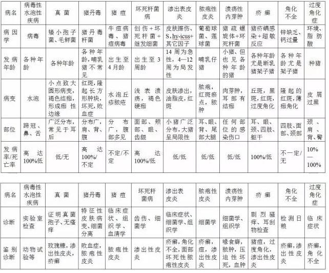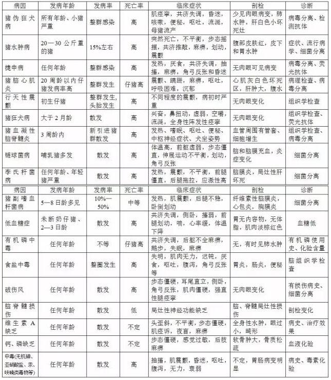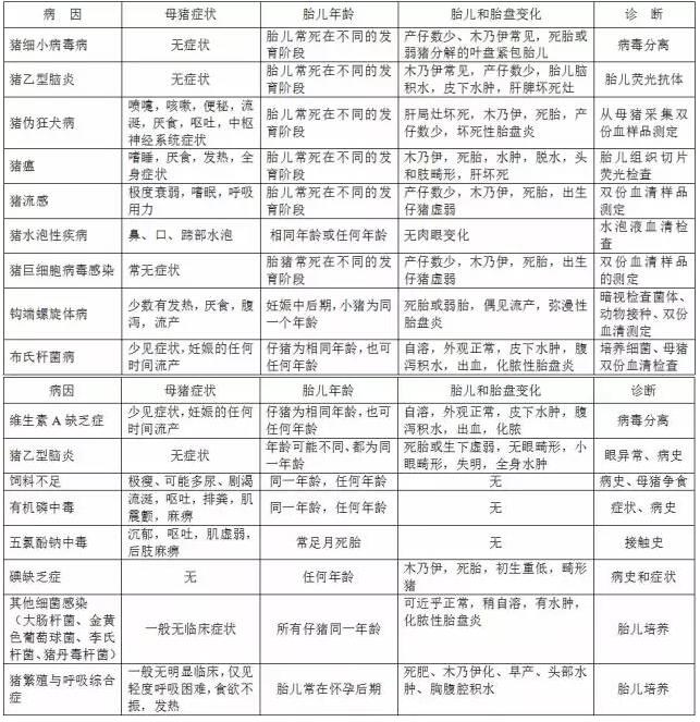 first, causes the sow to abort, the stillbirth sickness discrimination table two 、 differential diagnosis of swine nervous diseases three, pig skin disease identification table |