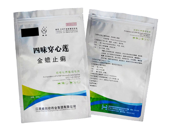 【 main ingredients 】 the pericarlene, the hot - vine, the big green leaf, gourd tea. 【 functions and indications 】 this product with qingrejiedu, moisture hysteresis, antibacterial anti-inflammatory, insecticidal and qi, cool blood dysentery, and other functions, for e. coli, salmonella, intestinal vibrio cholera bacteria, parvovirus, viruses and parasites have a significant effect. the following diseases of livestock (horses, cattle, sheep, pigs) : 1. bacterial diarrhea: including piglets, yellow-white dysentery, red dysentery, dysentery, e. coli, salmonella and paratyphoid. 2. viral diarrhea: diarrhea and diarrhea caused by parasitic infections such as coccidiosis, stomach worm disease, whipworm disease, toxoplasmosis, and parasitic infection. [usage dosage] internal: at one time, livestock should be used 1 ~ 2g of this product for 1kg of weight, add water to the feed or feed, 2 times a day for 2 ~ 3 days, and reduce the amount of prevention by half. 1. treatment: 1 ton feed for 500g of this product mix well and then feed for 2 ~ 3 days. 2. prevention: 500g of this product mix 1.5 ~ 2 tons of feed, mix well after feeding, use 3 ~ 5 days. [packaging specification] 100g/bag. [storage] airtight, moisture-proof.