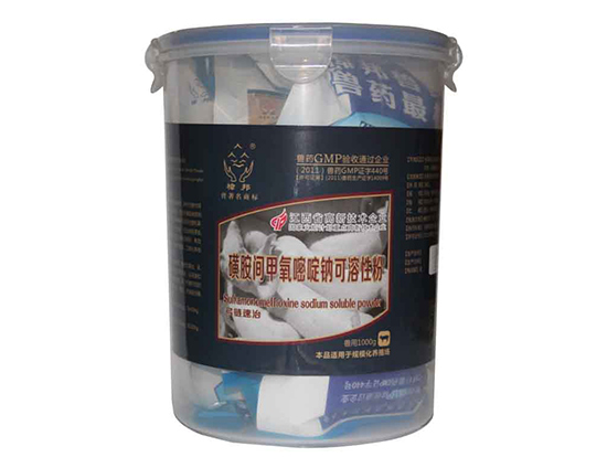 name of veterinary drug: a prescription drug for the soluble powder of sodium methoxypyrimidine sulfamonomethoxine sodium solubie powder chinese pinyin: huang 'an jianjiayangmidingna kerongxingfen [main components] sulfadiazine sodium 【 traits 】 this product is white or white powder. pharmacological action: sulfonamide antibacterial agent. sulfadiazine sodium inhibits bacterial reproduction by inhibiting the synthesis of folic acid and has a strong inhibitory effect on most gram-positive and negative bacteria. the internal medicine is absorbed well, the concentration is high in the blood, the acetylation rate is low, and the acetyl is solute in the urine and not easy to crystallize urine. [indication] is used to treat the respiratory tract, digestive tract and urinary tract infection caused by sensitive bacteria, and can also be used to treat chicken coccidiosis and chicken with leukocyte disease. [usage dosage] sulfadiazine sodium meter. mix drinks: every 1 liter of water, chicken 250 ~ 500mg. for 3-5 days. [adverse reactions] prolonged or large doses can cause the immune system to suppress, increase in weight and decrease in egg production. 【 caution 】 long-term use can damage the kidney and suggest the same amount of bicarbonate of sodium bicarbonate. [the drug period] 28. [specification] 25% [packaging] 100g/bag. storage: shade, sealed and preserved. [approval number] veterinary drug (2012) 140096025 [executive standard] : the national standard of veterinary medicine assembles > first volume [license number] (2011) veterinary drug production certificate 14009