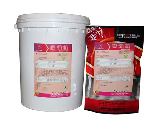 【 traits 】 this product is light yellow powder. [product features] 1. unique process formulation, comprehensive balanced nutrition, strong body prevention. 2. suitable for livestock and poultry at all stages. 3. insufficient nutrition for quick replenishment, improve immunity, and promote physical recovery. 4. rapidly adjust the breeding performance of livestock and poultry. 5. strong resistance to cold and heat. [indications] 1. promote the feeding and growth of livestock and poultry, quickly replenish and balance nutrition, significantly increase daily weight gain and feed utilization. 2. promote the improvement of the skin, hair and meat of livestock and poultry, and correct the inhomogeneity of growth. 3. strong body prevention, improve immunity, promote recovery after illness, and increase survival rate. 4. it is important to promote the development of ovaries and fallopian tubes, improve egg production rate, prolong the peak of egg production, and improve the quality of egg shell. 5. improve the efficiency of seed breeding and incubation rate. 6. prevention and mitigation of chicken fatty liver and soft feet. 7. supplementary nutrition, the chicken group is healthy, the chicken crest is rosy, the feathers are bright. 8. promote the ovulation of female pigs, improve the rate of fertilization, the rate of pregnancy and the rate of yield; increase the sperm motility and improve reproductive performance. 9. improve the anti-stress ability of weaned pigs and protected pigs, and reduce the occurrence of multi-system failure syndrome. 10. alleviate high temperature, cold, transport, turn group, immunity and other strong stress. [usage]