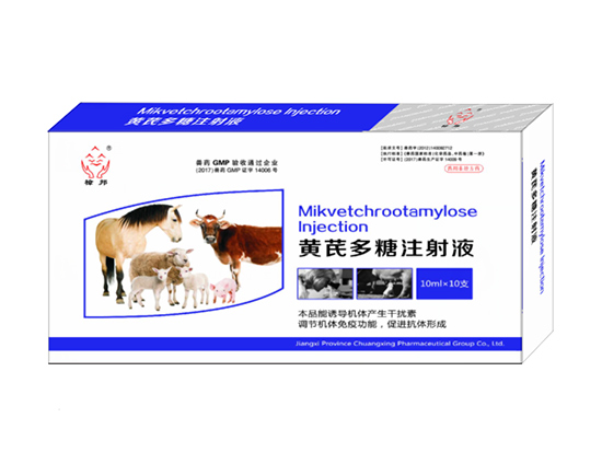 pregnant animals can be injected intravenously inhibit virus, enhance immunity, prevent and cure flu, fight failure good thinners and synergists for vaccines and powders name of veterinary drug: astragalus polysaccharide injection chinese pinyin: huangqi duotang zhusheye main ingredients: astragalus polysaccharide. 【 traits 】 this product is yellow or yellow brown liquid. [pharmacological action] antivirals. its mechanism is to induce the body produce interferon, combined with special receptors, promote antibody formation, regulate the body's functions, improve immune ability, competitive inhibition and prevent virus replication in a cell, lose the virus pathogenic ability, so as to achieve the poison, the role of detoxification. [indications] used for animals such as cows, horses, pigs, sheep, deer, dogs, cats, birds, etc. : 1. the prevention and treatment of viral infections, such as high consistency and variability, atypical swine fever, blue ear disease circle disease, influenza, the foot-and-mouth, wen poison, pox, parvovirus disease such as infection and secondary infection, and the subsequent failure disease, no food, body, etc. 2. the humoral immunity and cellular immunity in the body, the immune response is slow, low immunity, the body's internal organs function blocked with livestock restore immune function, effectively regulate the body's function, improve resistance, reduce death. 3. there is a significant effect on the infectious method of chicken. 4. the combination of this product and the vaccine can enhance the serum antibody potency of the vaccine and have been used as a protective agent and synergistic agent for the use of vaccines; it is also a good diluent and synergistic agent for powder injection. [usage dosage] intramuscular, subcutaneous or intravenous administration: one dose per 1kg weight, ox, horse 0.1 ml, pig, sheep, deer 0.2 ml, dog, cat, bird 0.3 ml, 1 times a day, 2 days. oral clothing: use this product 10ml water 3 ~ 5kg for drinking, 2 ~ 3 days. [tips] 1. this product has good protection and synergistic effect on the attenuated vaccine, penicillin, cephalospore, etc. the use of this product 1 ~ 2 times per month can effectively improve the immune function of the body and prevent the occurrence of disease. there is no regulation. [note: after long storage or freezing, if precipitation is precipitated and used, it will be equally effective. there is no regulation. specification: 10ml: 0.2g packaging: 10ml x 10 / box. storage: sealed.