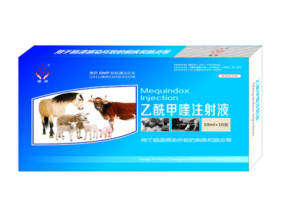 main ingredient: acetylmethaquine. [indications] for gram-negative, positive bacteria, there are obvious antibacterial effects of the myspirals, which are the preferred drugs for the rapid treatment of various intestinal disorders. 1. pig dysentery, bacterial enteritis, epidemic diarrhea, piglet yellow and white dysentery, calf diarrhea, paratyphoid fever, etc. 2. poultry and pasteuritis, yellow-white dysentery, e. coli, cholera, etc. [usage dosage] intramuscular injection: at one time, every 1kg of weight, horses, cattle 0.05 ml, sheep and pigs 0.1 ml, chicken 0.1ml, generally a single injection, severe cases were injected 24 hours later. oral: 0.2ml per 1kg weight or 10ml water for 10ml water for drinking. [specification] 10ml: 0.5g packaging: 10ml x 10 / box. storage: storage.