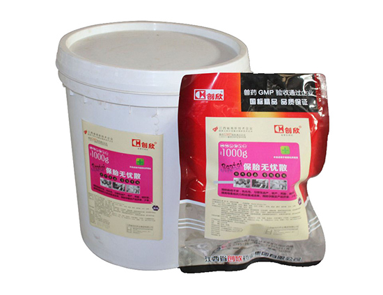 main treatment: to nourish the blood and raise the fetus. prevent fetal disturbance, aura, habitual abortion, premature birth, stillbirth, deformity. improve the survival rate of maternal and animal resistance and offspring. prevent pregnancy and postpartum anorexia, eat less. the name of the veterinary drug: it is safe to leave the name of business is carefree and carefree [pinyin] baotai wuyou san [main ingredients] angelica, chuanxiong, rime, white paeonia, astragalus, ginseng, white (char), orange peel, chen pi, scutellaria, basil, mugwort, liquorice. 【 traits 】 this product is light yellow powder; the smell of incense, taste, bitterness. 【 function main cure 】 fill the spirit of the god, raise blood an embryo: special add angelica, ripe ground extract, make up blood nourishing yin, fill lean to improve the hematopoietic function of the female pig, effectively prevent the pregnancy and postpartum anemia, paralysis, fetal malnutrition, abortion, and abortion. the survival rate and evenness of piglets were improved. enhanced immunity: this product can purify the toxin in the sows, eliminate immune suppression, and significantly enhance the immunity of female pigs. improve the digestive tract environment, regulate the digestive function, prevent the fetal fetal movement, anorexia, constipation. prevention of postpartum infection: significantly reduce postpartum anorexia, placental clothing, lack of milk, milk, breast inflammation, endometritis, postpartum fever, postpartum paralysis. [usage dosage] : boiled water, warm water and mixed ingredients: daily pig, sheep 30~ 60g, horse, cattle 200~ 300g, even taking 3-5 days. or a 100g mix of 5kg, which will take 10 days a month during pregnancy. [adverse reactions]. no adverse reactions were observed at the recommended dosage. packaging: 100g/package x 10 bags/bags [storage] airtight, moisture-proof. [approval number] veterinary drug (2013) 140095111 [implementation standard] chinese animal pharmacopoeia 2010 edition 2 [license number] (2011) veterinary drug production certificate 14009