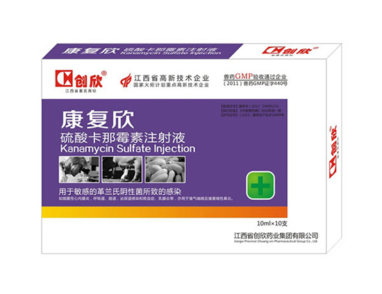 [main ingredients] kanamycin sulfate 【 characteristics 】 the product is colorless to light yellow or yellowish - green liquid. 【 indications 】 used for sensitive infections caused by gram-negative bacteria, such as bacterial endocarditis, respiratory tract, intestinal tract, urinary tract infection and sepsis, mastitis, etc, also used in pig asthma and swine atrophic rhinitis. intramuscular injection: one dose per 1 kg of weight, livestock 0.1 ~ 0.15 ml. two times a day, three times 5. [adverse reactions] 1. have ear toxicity, and its ear toxicity is stronger than streptomycin and gentamycin. 2. renal toxicity, but fewer vestibular toxicity. kanamycin is less toxic than neomycin. 3. neuromuscular blocking is often caused by excessive dosage. [note] 1. there are cross-allergic reactions with other amino glycosides, and the animals with allergic to aminoglycosides are banned. 2. use it with caution when the animals are dehydrated (blood-drug concentration) or kidney function damage. 3. in the treatment of urinary tract infection with this product, carnivorous animals and omnivorous animals can simultaneously use the sodium bicarbonate to make the urine alkaline to enhance the efficacy. 28 days (tentative); date of abandonment 7 days (tentative). [specification] 10ml: 1g (1 million units) packaging: 10ml x 10 / box storage: sealed.