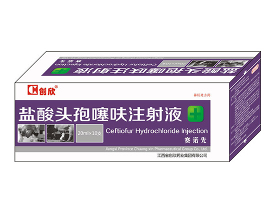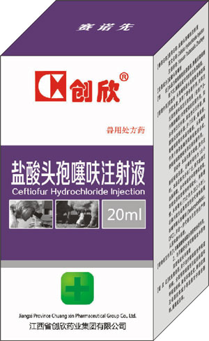 [veterinary drug name] : ceftiazi hydrochloride injection with prescription drugs english name: ceftiofur hydrochloride injection chinese pinyin: yansuan toubaosaifu zhusheye [main ingredients] cefotiroxine hydrochloride 【 traits 】 this product is a fine suspension of fine particles, and after static, the fine particles sink, and then the soft and white suspension is formed. [pharmacological action] pharmacodynamics cephalosporins thiamethoxam cefuroxime is cephalosporin class of veterinary clinical antibiotics, has a broad spectrum bactericidal effect, to gram-positive bacteria and gram-negative bacteria (including beta lactamase bacteria () have strong antibacterial activity. such as bacilli pasteurium, hemolytic pasteurium, pleural pneumoniae, salmonella, streptococcus, staphylococcus, etc. ceftiazurazone is used to block the synthesis of the peptides, which causes the bacterial cell wall to be sterile and sterilization. the internal medicine of pharmacokinetics is not absorbed and the intramuscular injection is absorbed quickly, and the peak time is about 1.8 hours. this product is widely distributed in the body, but cannot penetrate the blood-brain barrier. the drug concentration in blood and tissues was high, and the concentration of effective blood drug was prolonged, and the half-life was long (t1/2 was about 20.3 hours). in vivo, the active metabolite deoxyfuran ceftiofur (dfc) can be produced and further metabolized into inactive products excreted from urine and feces. [drug interactions] 1. synergistic effect with glucosaminoglycoside. 2. in combination with propysulfonate, it can improve the concentration of drug and prolong the half-life antibiotics are used to treat bacterial respiratory diseases. the effects of the intestinal and respiratory diseases, environmental changes, weaning stress and the decrease of maternal antibody in the comprehensive prevention of bacterial bacterial infection can improve the survival rate of piglets. [usage and dosage] intramuscular injection: at one time, each 1kg weight, pig 5mg. one time a day, three days. health care method: weaning or introduction of 1 day, 7 days, 1ml of intramuscular injection. [adverse reactions] 1. may cause gastrointestinal flora disorder or secondary infection. 2. have certain renal toxicity 3. in cattle, it can cause characteristic depilation and itching. 1. shake well before use; not to be frozen; after the first use, it should be used within 14 days. 2. the dosage should be adjusted for the renal insufficiency. 3. those who are sensitive to beta-lactamase should avoid contact with this product and avoid contact with children. pig 4 days [specification] 20ml:1g 20ml x 10 pieces/box storage: shade, sealed and preserved.