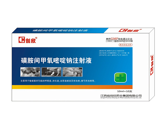 generic name: sulfadimethyrimidine sodium injection for veterinary use of non-prescription drugs english name: sulfamonomethoxine sodium injection chinese pinyin: huang, an jianjiayangmidingna zhusheye [main components] sulfadiazine sodium 【 traits 】 this product is colorless to microyellow transparent liquid. [pharmacological action] this product belongs to a broad spectrum of antimicrobial agents, is the strongest antimicrobial activity in vivo and in vitro sulphonamide, for most gram-positive bacterium and negative bacteria have stronger inhibition, bacterial drug resistance is slow. there are good antibacterial effects on gram-positive and negative bacteria, such as suppurative streptococcus, salmonella and pneumoniae. sulphonamide structurally similar to the amino acid, can compete with amino acid bacteria dihydrofolate synthetase, hinders dihydrofolate synthesis and reduce the amount of folic acid which, ultimately affect the synthesis of nucleic acid, inhibit the growth of bacteria breeding. the effects of sulfa drugs can be antagonised by aminobenzoic acid and its derivatives (procaine, buvacaine). in addition, the abscess and tissue decomposition products can also provide the necessary substances for bacterial growth and antagonize the sulfonamide drugs. [drug interactions] 1. synergistic effect with the use of benzyrimidine (antibacterial synergist). 2. some medicines containing the acyl amino benzene armour, such as procaine, tetracaine can generate amino acid in the body, such as yeast contains bacteria metabolic need amino acid, can reduce the medicine effect, therefore should not be used. 3. the use of diuretics such as thiazine or urinates can aggravate renal toxicity. [indications] it is mainly used for respiratory, digestive tract, urinary tract infection, coccidiosis and toxoplasmosis. [usage and dosage] iv: one dose, 1kg of weight, and 0.5ml of livestock. 1 ~ 2 times a day, 2 ~ 3 days. [adverse reactions] 1. sulfonamide or its metabolites can produce precipitation in the urine, which is more likely to produce crystallization during high dosage and long term administration, resulting in the blockage of crystalline urine, hematuria or renal tubules. 2. intravenous injection can cause temporary paralysis. 3. sulfonamide injection is a strong alkaline solution with strong irritant to the tissues. 1. this product can be crystallized by acid, so it should not be diluted with 5% glucose solution. 2. long-term or large dosage of application is easy to cause crystallization of urine, and it should be used for the application of sodium bicarbonate and drinking large amounts of water. 3. when allergic reactions or other serious adverse reactions occur, stop the medicine immediately and give treatment to symptomatic treatment. [offstage] cattle, sheep, pigs 28 days (tentative) [specification] 10ml: 1g packaging: 10ml x 5 branches/box storage: shade, sealed and preserved.