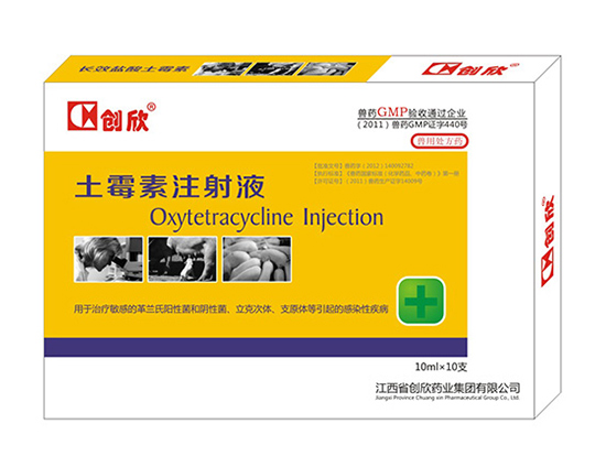 generic name: doxycycline injection english name: oxytetracycline injection chinese pinyin: tumeisu zhusheye [main ingredients] doxycycline. 【 traits 】 this product is yellow to light brown and yellow transparent liquid. [pharmacological action] broad-spectrum antibiotics. the positive bacteria of staphylococcus, hemolytic streptococcus, anthrax bacillus, tetanus clostridium and clostridium difficile were stronger. it is sensitive to gram-negative bacteria such as escherichia coli, salmonella, brucella and bacilli. this product has inhibitory effect on the recluse, chlamydia, mycoplasma, spirochete, actinomycetes and some protozoa. after intramuscular injection, the peak time is 30 minutes to several hours, depending on the injection site and volume. when doxycycline is absorbed, it is widely distributed in the body. it is mainly used in the primary form of the renal tubule to remove the excretion, and when the renal function is obstructed, the excretion is slowed down and the half-life is prolonged. 【 indications 】 used in the treatment of sensitive gram-positive bacterium and negative bacteria, rickettsia, mycoplasma and other infectious disease, pasteurella disease, escherichia coli disease, brucellosis, anthrax, salmonella disease, etc. [usage and dosage] using doxycycline. intramuscular injection: one dose, 1kg of weight, livestock 10 ~ 20mg (potency). [adverse reactions] 1. local stimulation. 2. intestinal flora disorder. 3. influence tooth and bone development. 4. liver and kidney damage. 5. cardiovascular effects. anti-metabolism. [note] 1. after injection, the horse can produce gastroenteritis and should be used with caution. 2. serious adverse effects of liver and kidney function are not used in this product. 3. lactating cows and sheep are banned. the day of the medicine: cows, sheep and pigs. [specification] 10ml:2g(2 million units) 10mlx10 / box. storage: shade, airtight, preserved in cool dark place.
