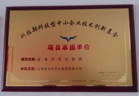 热烈祝贺我公司于2012年7月荣获江西省科学技术厅评定为“科技部科技型中小企业技术创新基金”项目承担单位,承担项目为“20%氟苯尼考混悬注射液。”