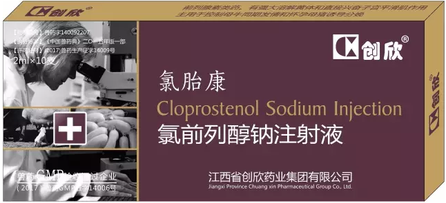 一、新品推广:氯胎康 【商品名】氯胎康 【通用名】氯前列醇钠注射液 【成分含量】氯前列醇钠2ml:0.2mg 【规格】2ml×10支 氯胎康——让您养母猪更轻松 氯前列醇钠,大家在养母猪的过程中经常会用到,它对母猪来说,是非常有用的,且非常好用的一个药物。 此药物对母猪有许多的好处,可以让您养殖母猪更加轻松,省时省力,更能提高母猪的生产性能,带来直接的经济效益,同时此药物经济实惠,受到广大养殖户的青睐。 氯胎康,是江西创欣药业集团最新研发的生殖激素类产品之一,下面我们将本品的功效与用处跟大家分享一下。 1、诱导分娩: (1)在母猪预产期112-116天未生产的情况下,使用本品,一般在25-26个小时后分娩,可以使得这批预产期接近的母猪同一时间生产,同一时间断奶,同一时间发情。 (2)白天使用本品后,母猪在第二天白天生产,从而避免了深夜熬夜的辛劳,让养猪人更轻松 2、诱导发情: (1)母猪断奶后持久黄体,不发情或发情不明显,使用本品后,能快速溶解黄体,促进母猪发情、刺激排卵 (2)公猪性欲低下,精液量少,使用本品后,能提升公猪性欲,增加精液射出的数量 (3)母猪断奶后长期不发情,可使用本品,配合孕马血清 3、排出恶露: (1)母猪生产使用本品,能使胎衣、死胎、其他杂质等顺利排出 (2)母猪生产未使用本品,母猪产完3天后,发现有白色或黄色脓性物质流出,有臭味,应立即使用本品,排出子宫内恶露,并配合肌注0.5g头孢噻呋钠 宫乳炎清进行消炎 4、超期引产及死胎弱胎的流产处理: (1)母猪超过预产期3天以上,仍无分娩的征兆的,使用本品,进行超期引产,以确保仔猪的安全 (2)当确定母猪腹内胎儿是死胎或弱胎,没有保留的价值,可以使用本品,进行流产处理,以保护母猪的身体健康 5、消除炎症: (1)母猪发情后,有白色或黄色脓性物质流出,有臭味,使用本品的同时,并配合肌注0.5g头孢噻呋钠 宫乳炎清进行子宫消炎,严重的采用速孕灌注液进行子宫清洗 6、提高母猪生产性能 (1)母猪断奶发情间隔缩短,提升了年产胎次 (2)促进母猪发情排卵,生产顺利,提高窝产仔总数及活仔数,大量的试验数据表明,长期使用本品的母猪,平均每窝断奶能多提供1头以上仔猪。 7、实验数据 本品在上市之前,在与公司的合作大型猪场进行了临床实验,收集的数据真实可靠,疗效十分确切。 试验分为两组,一组是实验组,即按照母猪生产需要使用本品 另一组是空白对照组,不使用本品及同类的产品 每组数据采集母猪数分别为500头,得出的平均值。 8、临床实际用法用量(建议): 本品1支通常可用于200-250斤体重的母猪,临床实际操作中,可根据母猪的体重确定用量,最多一次用量不要超过3支。