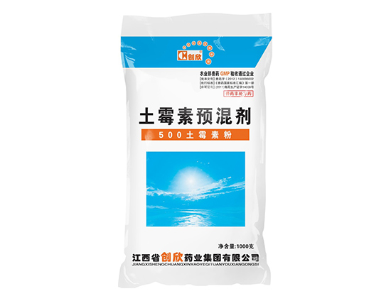 【兽药名称】通用名称:土霉素预混剂 兽用非处方药 英文名称:oxytetracycline premix 汉语拼音:tumeisu yuhunji 【主要成分】土霉素 【性 状】本品为类白色至淡黄色粉末。 【药理作用】四环素类抗生素。对葡萄球菌、溶血性链球菌、炭杆菌,破伤风梭菌和梭状芽孢杆菌等革兰氏阳性菌作用较强,但不如β-内酰胺类。对大肠杆菌、沙门氏菌、布鲁氏菌和巴氏杆菌等革兰氏阴性菌较敏感,但不如氨基糖苷类和酰胺醇类抗生素。对立克次氏体、衣原体、支原体、螺旋体、放线虫和某些原虫也有抑制作用。 【适 应 证】用于预防某些革兰氏阳性和阴性细菌、立克次氏体、支原体等感染,促进仔猪、幼禽的生长发育,提高饲料利用率。 【用法与用量】以土霉素计。混饲:每100kg饲料,仔猪20~30g,育肥猪30~40g,禽10~30g。 【不良反应】按推荐剂量使用,未见不良反应。 【注意事项】1.怀孕母猪禁用。 2.忌与含氯量多的自来水和碱性溶液混合。勿用金属容器盛药。 3.避免与乳制品和含钙、镁、铝、铁等药物及含钙量较高的饲料使用。宜饲前空腹服用。 4.成年反刍动物、马属动物和兔不宜内服。长期应用可诱发耐药细菌和真菌的二重感染,严重者引起败血症而死亡。 【休 药 期】猪7日;禽5日。 【规 格】100g:(土霉素)50g(5000万单位) 【包 装】1000g/包。 【贮 藏】遮光,密封,在干燥处保存。