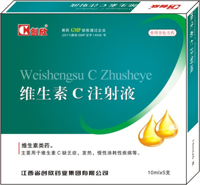 【兽药名称】通用名称:维生素c注射液 英文名称:vitamin c injection 汉语拼音:weishengsu c zhusheye 【主要成分】维生素c 【性状】本品为无色至微黄色的澄明液体。 【药理作用】维生素c在体内和脱氢维生素c形成可逆的氧化还原系统,此系统在生物氧化还原反应和细胞呼吸中起重要作用。维生素c参与氨基酸代谢及神经递质、胶原蛋白和组织细胞间质的合成,可降低毛细血管通透性,具有促进铁在肠内吸收,增强机体对感染的抵抗力,以及增强肝脏解毒能力等作用。 维生素c在体内广泛分布于全身组织,血浆蛋白结合率约25%,在肝脏代谢,维生素c主要以原形从尿排泄,过量时被代谢为草酸(乙二酸)。 【药物相互作用】 (1)与水杨酸类和巴比妥合用能增加维生素c的排泄。 (2)与维生素k3、维生素b2、碱性药物和铁离子等溶液配伍,可降低药效,不宜配伍。 【作用与用途】 维生素类药。主要用于维生素c缺乏症,发热,慢性消耗性疾病等。 【用法与用量】 肌内、静脉注射:一次量,马20~60ml;牛40~80ml;羊、猪4~10ml;犬0.4~2ml。 【不良反应】给予高剂量时,可增加尿酸盐、草酸盐或胱氨酸结晶形成的风险。 【注意事项】(1)与水杨酸类和巴比妥合用能增加维生素c的排泄。 (2)与维生素k3、维生素b2、碱性药物和铁离子等溶液配伍,可影响药效,不宜配伍。 (3)大剂量应用时可酸化尿液,使某些有机碱类药物排泄增加。 (4)对氨基糖苷类、β-内酰胺类、四环素类等多种抗生素具有不同程度的灭活作用,因此不宜与这些抗生素混合注射。 【休药期】无需制定。 【规格】10ml∶0.5g 【包装】10ml×5支 【贮藏】遮光,密闭保存。 |