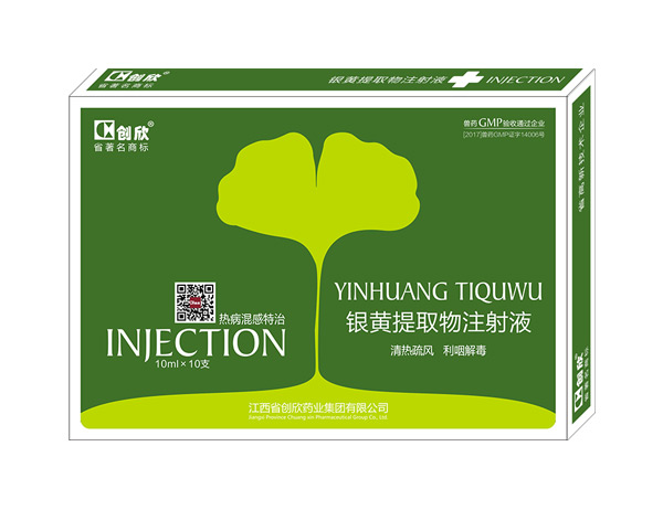 列性高热 重症混感 【兽药名称】通 用 名:银黄提取物注射液 汉语拼音:yinhuang tiquwu zhusheye 【主要成份】金银花、连翘、黄芩。 【性 状】本品为棕红色澄明液体。 【功能主治】清热燥湿、泻火解毒、疏风解表、消肿散结。主治下列重症混感、高热病: 猪附红细胞体病 温和型猪瘟 圆环病毒病 蓝耳病 链球菌病 嗜血杆菌胸膜肺炎 喘气病 钩端螺旋体病 肺疫 弓形体病 【临床症状及疗效】 1.体温升高,达41~42℃。-----------------------------------------------→速退 2.全身皮肤呈紫红色或红色;胸腹部及耳朵上出现紫红色斑点或斑块;耳部、外阴、尾、鼻、腹部发绀。--------------------------------------------------------→独特 3.咳嗽,气喘,呼吸困难,口、鼻流出淡红色分泌物。------------------------→缓解 4.食欲减少或废绝,后肢无力,行走摇摆(转圈、磨牙、昏迷等),怀孕母猪发生流产或死胎。------------------------------------------------------------------→显著 5.便秘拉稀或便秘拉稀交替发生,出现血尿、蛋白尿或尿液呈茶褐色。----------→消失 【用法用量】肌内或皮下注射:一次量,每1kg体重,猪、鸡0.1ml,一日1次,连用3日。 【不良反应】尚未见不良反应。 【注意事项】①本品为高质量产品,疗效独特,在治疗以上疾病时,无须与其它药物同时使用。 ②中药制剂因贮存若有少许色泽差异或有沉淀析出,摇匀使用,不影响疗效。 ③孕畜严禁超量使用。 【休 药 期】暂无规定。 【规 格】10ml 【包 装】10ml/支×10支/盒