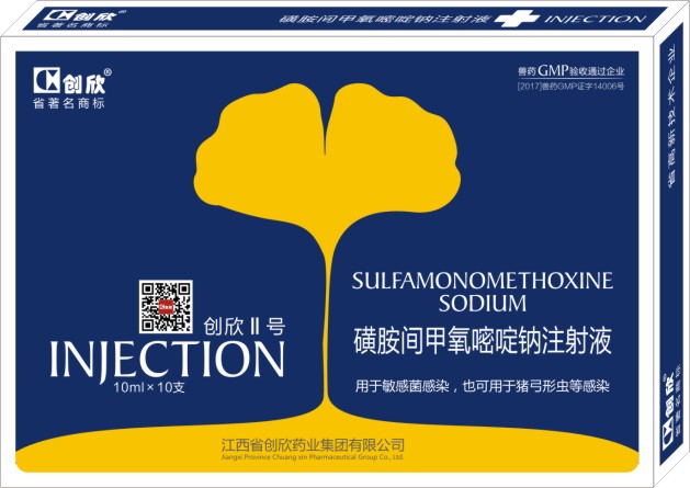 【兽药名称】通用名称:磺胺间甲氧嘧啶钠注射液 兽用非处方药 英文名称:sulfamonomethoxine sodiun injection 汉语拼音:huang'an jianjiayangmidingna zhusheye 【主要成分】磺胺间甲氧嘧啶钠 【性状】本品为无色至淡黄色澄明液体。 【药理作用】本品属于广谱抗菌药物,是体内外抗菌活性最强的磺胺药,对大多数革兰氏阳性菌和阴性菌都有较强抑制作用,细菌对此药产生耐药性较慢。对革兰氏阳性菌和阴性菌如化脓性链球菌、沙门氏菌和肺炎杆菌等均有良好的抗菌作用。磺胺药在结构上类似对氨基苯甲酸,可与氨基苯甲酸竞争细菌体内的二氢叶酸合成酶,阻碍二氢叶酸的合成,最终影响核酸的合成,抑制细菌的生长繁殖。磺胺药的作用可被氨基苯甲酸及其衍生物(普鲁卡因、丁卡因)所拮抗。此外,脓液以及组织分解产物也可提供细菌生长的必需物质,与磺胺药产生拮抗作用。 【药物相互作用】1.与苄氨嘧啶类(抗菌增效剂)合用,可产生协同作用。2.某些含对氨基苯甲酰基的药物如普鲁卡因、丁卡因等在体内可生成对氨基苯甲酸,酵母片中也含有细菌代谢所需要的对氨基苯甲酸,合用可降低本药作用。 3.与噻嗪类或速尿等利尿剂同用,可加重肾毒性。 【作用与用途】磺胺类抗菌药。用于敏感菌感染,也可用于猪弓形虫等感染。 【用法与用量】静脉注射:一次量,每1kg体重,家畜0.5ml。一日1~2次,连用2~3日。 【不良反应】1.磺胺或其代谢物可在尿液中产生沉淀,在高剂量给药或低剂量长期给药时更易产生结晶,引起结晶尿、血尿或肾小管堵塞。 2.马静脉注射可引起暂时性麻痹。 3.磺胺注射液为强碱性溶液,对组织有强刺激性。 【注意事项】1.本品遇酸类可析出结晶,故不宜用5%葡萄糖液稀释。 2.长期或大剂量应用易引起结晶尿,应同时应用碳酸氢钠,并给患畜大量饮水。 3.若出现过敏反应或其他严重不良反应时,立即停药,并给予对症治疗。 【休药期】28日;弃奶期7日。 【规格】10ml:1g 【包装】10ml×10支 【贮藏】遮光,密闭保存。 |
