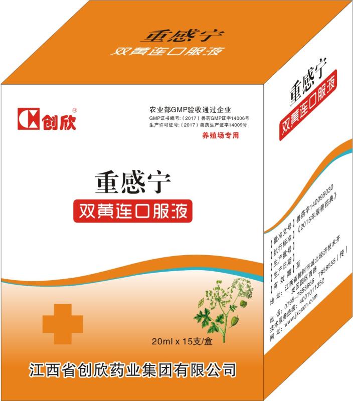 双黄连口服液 【兽药名称】通用名称:双黄连口服液 兽用非处方药 汉语拼音:shuanghuanglian koufuye 【主要成分】金银花、黄岑、连翘。 【性状】本品为棕红色的澄清液体;微苦。 【功能】辛凉解表,清热解毒。 【主治】感冒发热。 证见体温升高,耳鼻温热,发热与恶寒同时并见,被毛逆立,精神你呢沉郁,结膜潮红,流泪,食欲减退,或有咳嗽,呼出气热,咽喉肿痛,口渴欲饮,舌苔薄黄,脉象浮数。 【用法与用量】犬、猫1~5ml;鸡0.5~1ml。 【不良反应】按规定剂量使用,暂未见不良反应。 【注意事项】风寒感冒者不宜使用。 【规格】每1ml相当于原生药1.5g。 【包装】20ml×15支/盒 【贮藏】密封,避光,置阴凉处。 【批准文号】兽药字140095030 【执行标准】《2015年版兽药典》 【gmp证号】(2017)兽药gmp证字14006号 【许可证号】(2017)兽药生产证字14009号 |