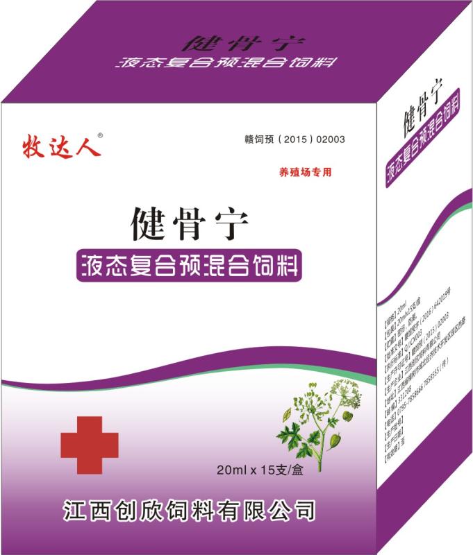 健骨宁 通用名称:液态复合预混合饲料 【主要成分】vd3、葡萄糖酸钙、卵磷脂、右旋糖酐铁、硫酸锌、亚硒酸钠。 【成分分析保证值】每1kg中钙(ca)≥1.35%(g/ml),vd3≥100mg 本品符合饲料卫生标准 【作用用途】vd3促进钙的吸收,影响钙、磷代谢及骨骼生长发育,铁可构成血红蛋白、肌红蛋白、细胞色素及呼吸酶,参与体内氧和二氧化碳的转运,交换和组织的呼吸过程;锌可构成激活酶,促进生长发育和组织再生;硒可保持生物膜,维持细胞的正常功能,维护心脏健康,促进生长。使用本品: 1. 改善幼畜因vd、钙、磷、铁、锌、硒摄入不足而引起的生长迟缓,食欲不振,佝偻病,软骨症,跛行,四肢无力,免疫力下降等。 2. 对母畜产后瘫痪,卧地不起及胎衣不下等有积极作用。 3. 对禽类低钙引起的啄肛、啄蛋、产蛋率下降及促进生产,提高抗病和抗应激能力。 【用法用量】口服,牛、羊、猪每1kg体重1~2ml。 【注意事项】本品有轻微沉淀摇匀后使用不影响疗效。 【规格】500ml 【包装】500ml/瓶 【贮藏】密闭,防潮。 【批准文号】赣饲预字(2016)642019号 【执行标准】q/jcx003 【生产许可证号】赣饲预(2015)02003 【生产企业】江西创欣饲料有限公司 【地址】江西省樟树市城北经济技术开发区园区西路 【邮 编】331208 【电话】0795-7858666 7858555(传) |