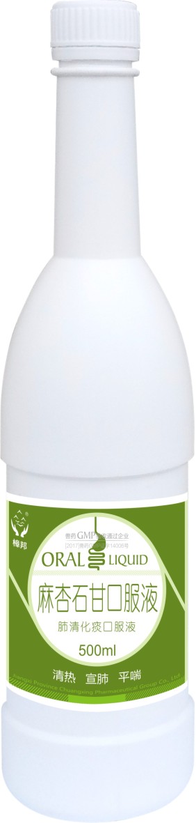 【兽药名称】通用名称:麻杏石甘口服液 兽用非处方药 汉语拼音:maxingshigan koufuye 【主要成分】麻黄、苦杏仁、石膏、甘草。 【性状】本品为深棕褐色的液体。 【功能】清热,宣肺,平喘。 【主治】肺热咳喘。 【用法用量】口服。大家畜0.1~0.2ml/kg,小家畜0.2~0.4ml/kg。 【不良反应】暂无规定。 【注意事项】1.在用前控制饮水3~4小时后再将药液加入饮水中,使家畜将药液充分饮入; 2.用于四季泻火; 3.本品有轻微沉淀属正常现象,摇匀后使用不影响疗效。 【规格】每1ml相当于原生药2.4g。 【包装】500ml/瓶 【贮藏】遮光,密闭保存。 |