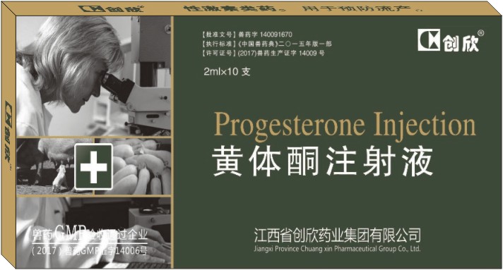 【兽药名称】 通用名称:黄体酮注射液 英文名称:progesterone injection 汉语拼音:huangtitong zhusheye 【主要成分】黄体酮 【性 状】本品为无色至淡黄色的澄明油状液体。 【药理作用】在雌激素作用基础上,黄体酮可促进子宫内膜及腺体发育,抑制子宫肌收缩,减弱子宫肌对催产素的反应,起“安胎”作用;通过反馈机制抑制垂体前叶促黄体素的分泌,抑制发情和排卵。另外,与雌激素共同作用,刺激乳腺腺泡发育,为泌乳作准备。 【作用与用途】性激素类药。用于预防流产。 【用法与用量】肌内注射:一次量,马、牛 5~10 ml;羊、猪 1.5~2.5 ml;犬 0.2~0.5ml 。 【不良反应】按规定的用法用量使用尚未见不良反应。 【注意事项】(1)奶牛泌乳期禁用。 (2)长期应用可能延长妊娠期。 【休 药 期】30 日。 【规 格】2ml∶20mg 【包 装】2ml×10支 【贮 藏】遮光,密闭保存。 |