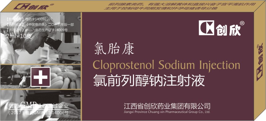 【兽药名称】 通用名称:氯前列醇钠注射液 英文名称:cloprostenol sodium injection 汉语拼音:lüqianliechunna zhusheye 【主要成分】氯前列醇钠 【性 状】本品为无色的澄明液体。 【药理作用】本品为人工合成的前列腺素 f 2α 同系物。具有强大的溶解黄体作用,能迅速引起黄体消退,并抑制其分泌;对子宫平滑肌也具有直接兴奋作用,可引起子宫平滑肌收缩,子宫颈松弛。对性周期正常的动物,治疗后通常在 2~5 日内发情。妊娠 10~150 日的怀孕牛,通常在注射用药后 2~3 日出现流产。 【作用与用途】前列腺素类药。有强大溶解黄体和直接兴奋子宫平滑肌作用,主用于控制母牛同期发情和怀孕母猪诱导分娩。 【用法与用量】肌内注射:一次量,牛 2~3 ml;猪,妊娠第 112~113 日 0.5~1ml。 温馨提示:1.诱导分娩(白天分娩):怀孕期112天或113天上午8点肌注氯前列醇钠0.2~0.4mg,20小时后如产道开放不全,配合注射缩宫素20~50单位/头,效果更好。 2.治产后无乳、少乳:产后每天肌注氯前列醇钠0.2mg,连用三天。 3.产后康复:产后子宫内有许多由于分娩残留的物质恶露,子宫恢复的快慢直接影响母猪的产后发情,子宫的修复与卵巢功能的恢复有直接的关系。在分娩后肌注缩宫素40~50单位,和头孢噻呋钠0.5g,母猪产后第二天肌注氯前列醇钠0.2mg,再过一个星期左右再注射氯前列醇钠0.2mg。 【不良反应】在妊娠后期应用本品,可增加动物难产的风险,且药效下降。 【注意事项】(1)维持妊娠的动物禁用。 (2)诱导分娩时,应在预产期前 2 天使用,严禁过早使用。 (3)本品可诱导流产或急性支气管痉挛,使用时要小心,妊娠妇女和患有哮喘及其他呼吸道疾病的人员操作时应特别小心。 (4)如果偶尔吸入或注射本品引起呼吸困难,可吸入速效舒张支气管药。 (5)本品极易通过皮肤吸收,操作时应配戴橡胶或一次性防护手套,操作完毕及在饮水或饭前,用肥皂和水彻底洗手。皮肤上粘、溅本品,应立即用清水冲洗干净。 (6)本品不能与解热镇痛抗炎药同时应用。 (7)本品用完后,空瓶应深埋或焚烧。本品产生的废弃物应在批准的废物处理设备中处理,严禁在现场处置未经稀释的本品。勿使本品污染饮水、饲料和食品。 【休药 期】无需制定。 【规 格】按 c 22 h 29 clo 6 计算2ml:0.2mg 【包 装】2ml×10支 【贮 藏】密闭,在凉暗处保存。 |