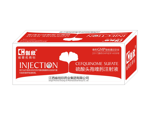 硫酸头孢喹肟注射液 【兽药名称】通用名称:硫酸头孢喹肟注射液 兽用处方药 英文名称:cefquinome sufate injiection 汉语拼音:liusuan toubaokuiwo zhusheye 【主要成分】硫酸头孢喹肟 【性状】本品为细微颗粒的混悬油溶液。静置后,细微颗粒下沉,摇匀后成均匀的类白色至浅褐色的混悬液。 【药理作用】药效学 头孢喹肟是动物专用第四代头孢菌素类抗生素。通过抑制细胞壁的合成达到杀菌效果,具有广谱抗菌活性,对β-内酰胺酶稳定。体外抑菌试验表明头孢喹肟对常见的革兰氏阳性和革兰氏阴性菌敏感,包括大肠埃希菌、枸橼酸杆菌、克雷伯氏菌、巴氏杆菌、变形杆菌、沙门氏菌、黏质沙雷菌、牛嗜血杆菌、化脓放线菌、芽孢杆菌属的细菌、棒状杆菌、金黄色葡萄球菌、链球菌、类杆菌、梭状芽孢杆菌、梭杆菌属的细菌、普雷沃菌、放线杆菌和猪丹毒杆菌等。 药动学 猪每1kg体重肌内注射头孢喹肟2mg,0.4小时后血药浓度达到峰值,峰浓度为5.93μg/ml,消除半衰期约为1.4小时,药时曲线下面积为12.34μg·h/ml。 【作用与用途】β-内酰胺类抗生素,用于治疗由多杀性巴氏杆菌或胸膜肺炎放线杆菌引起的猪呼吸道疾病。 【用法与用量】肌内注射:一次量,每1kg体重,猪0.08~0.12ml,一日1次,连用3~5日。 【不良反应】按规定的用法用量使用尚未见不良反应。 【注意事项】1.对β-内酰胺类抗生素过敏的动物禁用。 2.对青霉素和头孢喹肟抗生素过敏者勿接触本品。3.使用前应充分摇匀。 【休药期】猪3日。 【规格】按c23h24n6o5s2计算20ml:0.5g 【包装】20ml×10支/盒 【贮藏】密闭,在凉暗处保存。 |